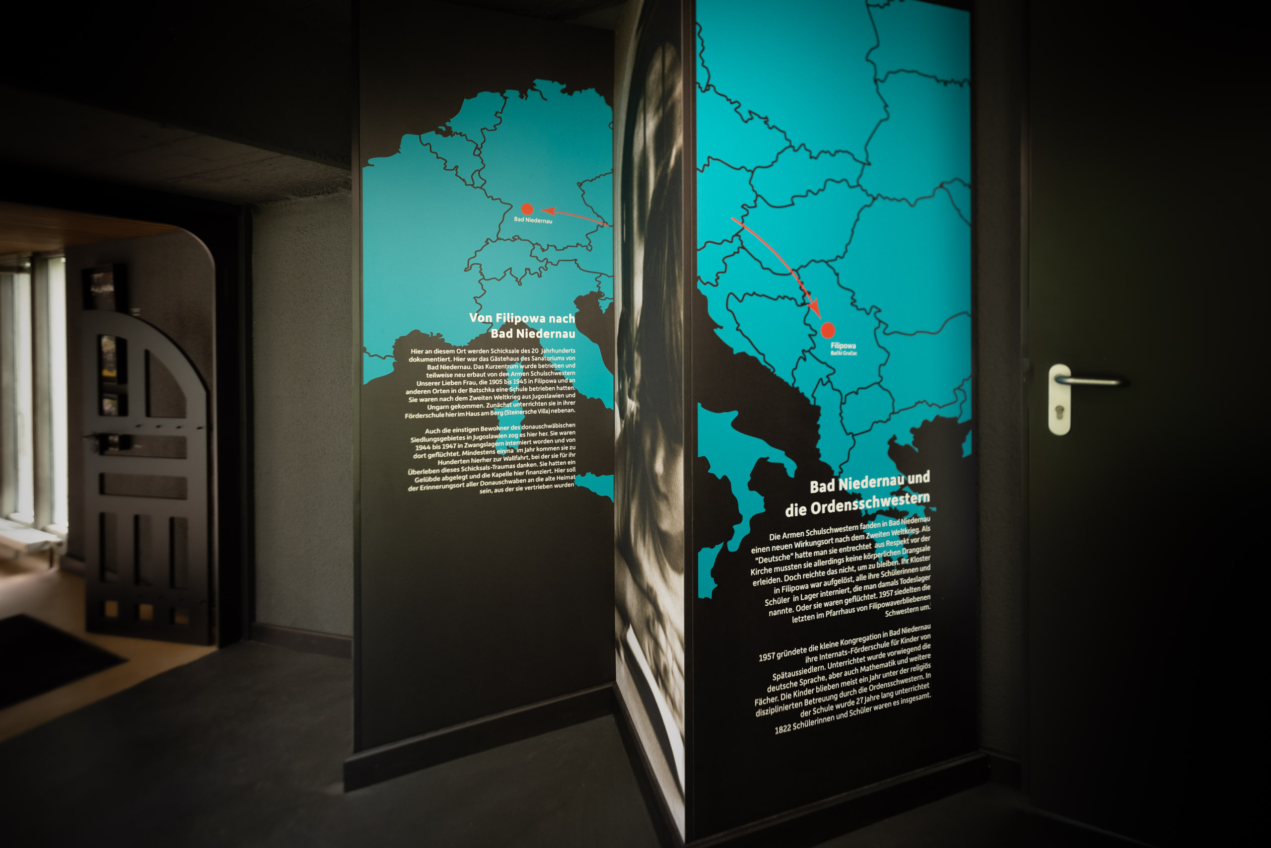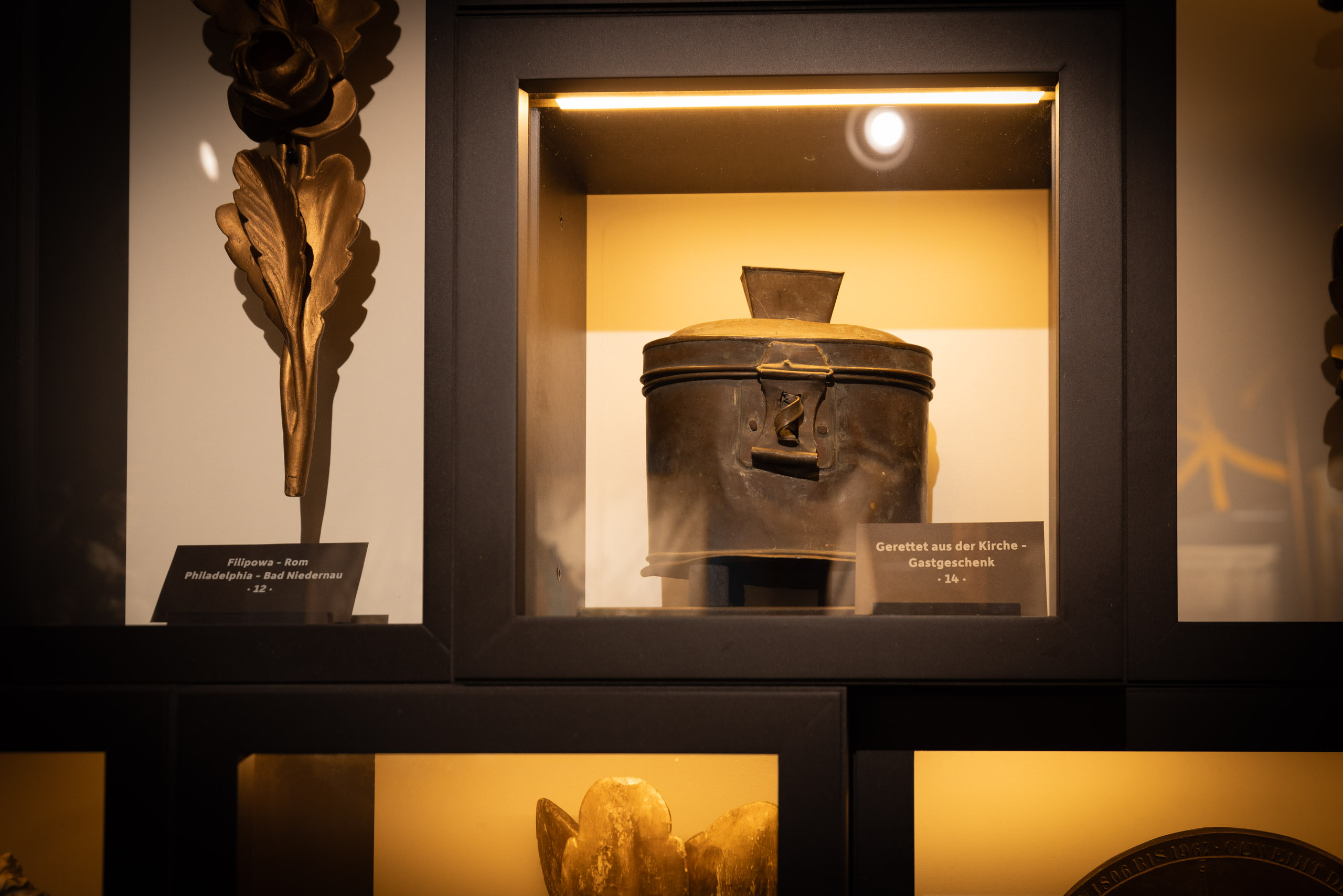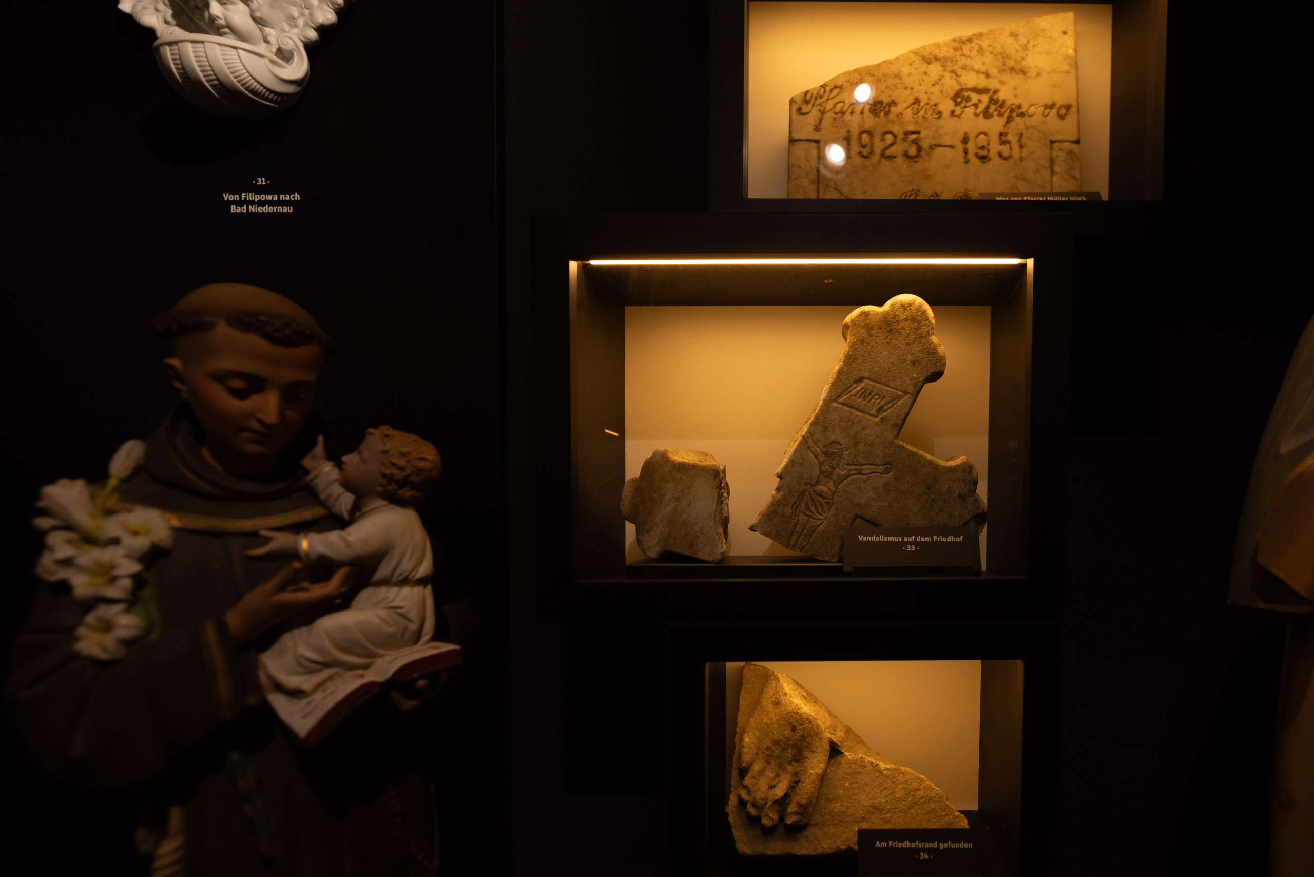 · Dokumentation und Ausstellung · Filipowa – Bad Niedernau · Erinnerungen einer Schicksalsgemeinschaft von Deutschen aus einem Ort, der einst österreichisch, dann ungarisch, später jugoslawisch war – und heute als Bački Gračac in Serbien liegt. Viele der Armen Schulschwestern stammten aus Filipowa, einem katholisch geprägten Ort, der 1941 rund 5.300 Einwohner zählte. In der Ausstellung erzählen über 90 Objekte, was es bedeutet, in wenigen Stunden alles zu verlieren – Haus, Heimat, Gemeinschaft. Der deutschsprachige Ort Filipowa war katholisch geprägt. Den geretteten Dingen rund um Kirche und Glaube ist deshalb ein eigener Raum gewidmet – als Ausdruck gemeinsamer Werte und identitätsstiftender Tradition. Ein zweiter Raum zeigt Alltagsgegenstände, die erhalten blieben, und von denen viele von den neuen Bewohnern – Serben aus Kroatien – bei Besuchen geschenkt worden sind. Sie wurden zu Symbolen des einstigen Dorfalltags – in dem Leben vieler, die nach Vertreibung und Flucht aus den Vernichtungslagern, die an anderen Orten – in Deutschland, Österreich und weltweit – neu beginnen mussten. Der alte Ort war verloren - die Dokumentation will das Erinnern in Ehren halten und bewahren.